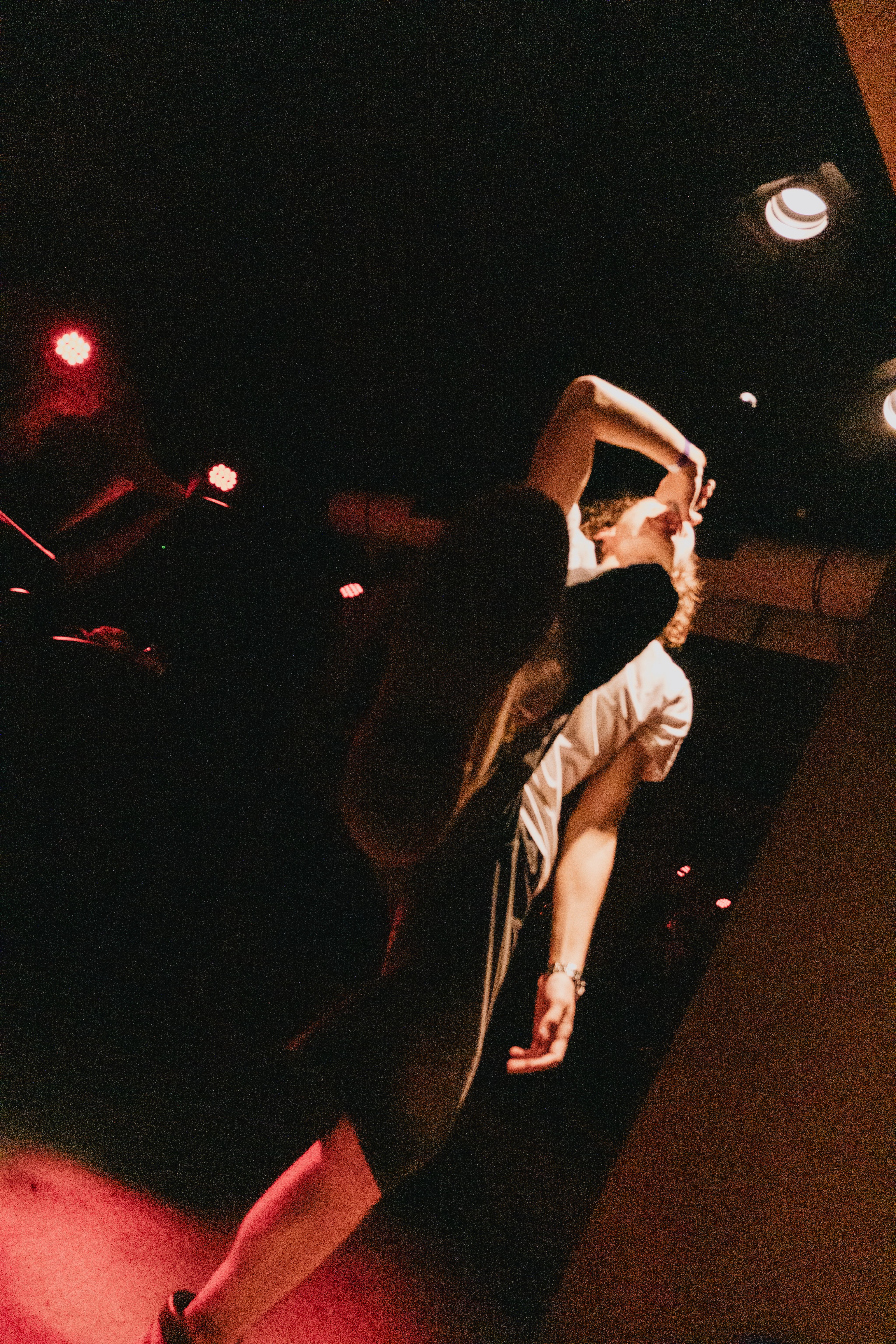 T : Quand tu es dans une situation comme ça, le réflexe de ton corps, c'est qu'il met le coude pour ne pas se faire mal. Le matelas était super fin, c’était un peu dangereux. On a pris des chaises, des coussins du studio et on en a éparpillé un peu partout. Comme quand t’es gamin et que tu joues à la bagarre, pour ne pas te faire mal, tu créais ton périmètre de sécu’.